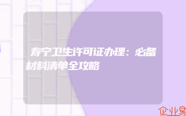 - 寿宁卫生许可证办理:必备材料清单全攻略