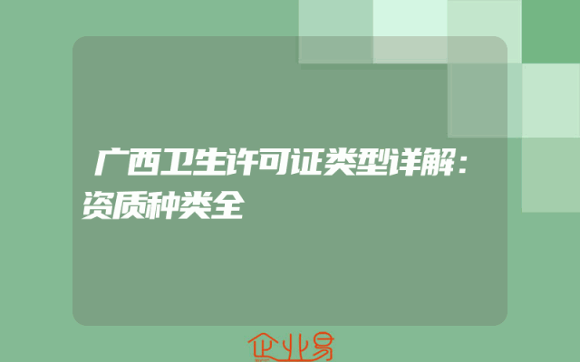 - 广西卫生许可证类型详解:资质种类全解析一、广西卫生许可证概述在广西地区,卫生许可证是企业和个人从事卫生相关行业的必备资质。根据行业类型和业务范围,广西卫生许可证分为多种类型,包括食品卫生许可证、公共场所卫生许可证、医疗机构执业许可证等。这些