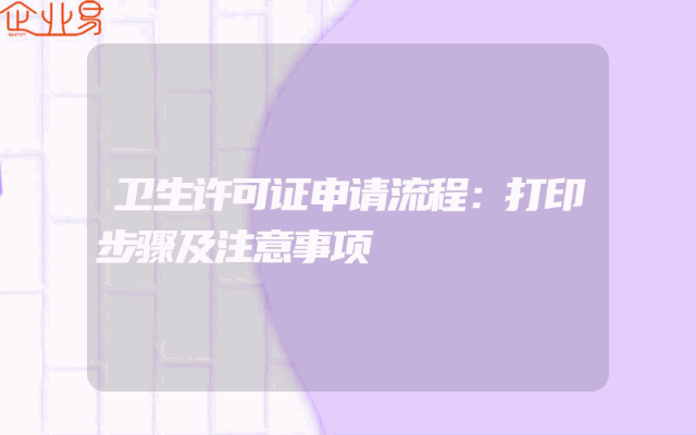 - 卫生许可证申请流程:打印步骤及注意事项一、了解卫生许可证申请的重要性卫生许可证是企业合法经营的必备证件之一,尤其在食品、餐饮、医疗等与民众健康密切相关的行业中更是不可或缺。申请卫生许可证不仅是对企业资质的认证,更是对消费者健康权益的保障。因