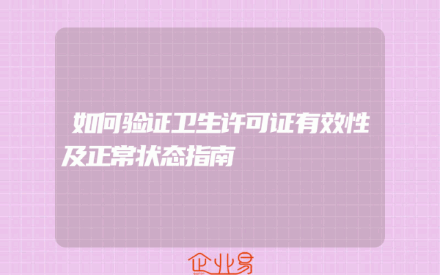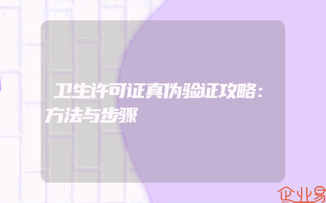 - 卫生许可证真伪验证攻略:方法与步骤解析一、了解卫生许可证基本知识卫生许可证是企业和机构从事食品、卫生等相关行业的必备证照,是保障公众健康的重要法律依据。在进行真伪验证之前,我们需要对卫生许可证有一定的了解,包括其种类、颁发机构、有效期等基本