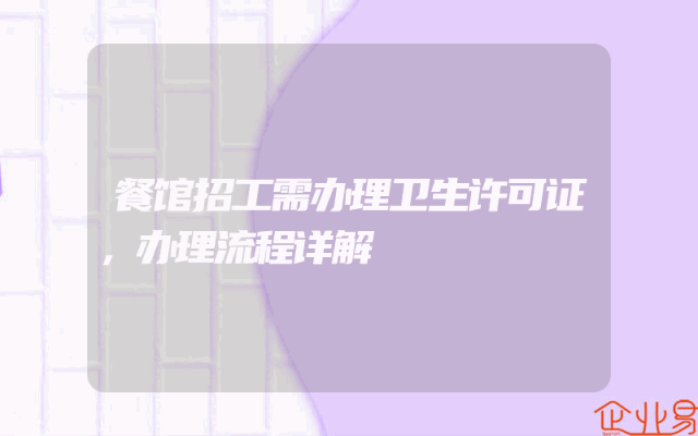- 餐馆招工需办理卫生许可证,办理流程详解