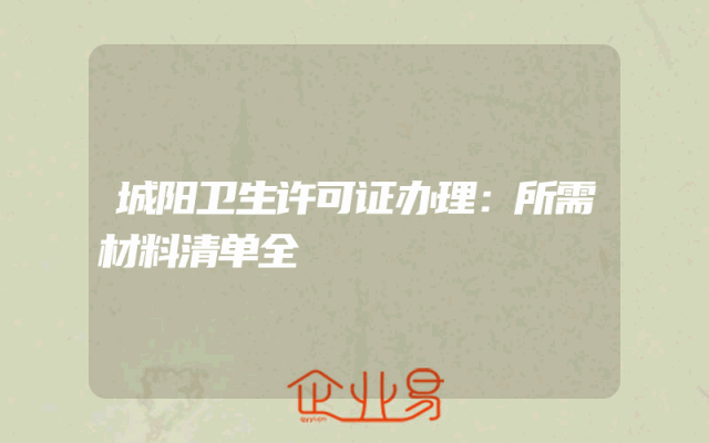 - 城阳卫生许可证办理:所需材料清单全解析一、城阳卫生许可证的重要性城阳卫生许可证是企业在卫生领域合法经营的凭证,对于各类涉及公共卫生、食品安全、医疗服务等行业的单位和个人来说,办理城阳卫生许可证是开展业务的必要前提。了解办理所需材料清单,有助