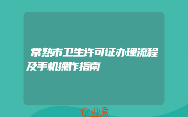 - 常熟市卫生许可证办理流程及手机操作指南一、常熟市卫生许可证办理流程常熟市作为经济发达的城市,对于企业的卫生管理要求严格。若您需要办理卫生许可证,需首先了解相关流程。通常,办理卫生许可证的流程包括以下几个步骤:1.准备工作:整理企业相关证件(
