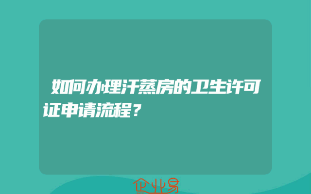 - 如何办理汗蒸房的卫生许可证申请流程?