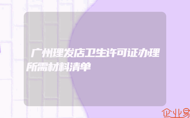 - 广州理发店卫生许可证办理所需材料清单