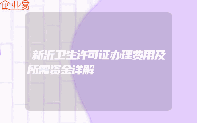- 新沂卫生许可证办理费用及所需资金详解