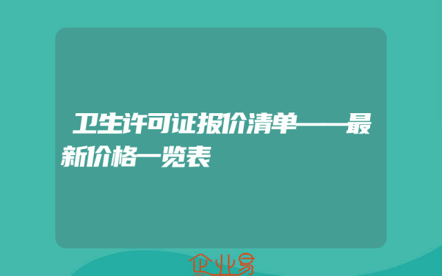 - 卫生许可证报价清单——最新价格一览表各类企业卫生许可证申请费用概述随着市场经济的繁荣发展,企业数量不断增加,卫生许可证作为企业经营的必备资质,其办理流程和费用也成为关注的焦点。本文将为您详细介绍卫生许可证的最新报价清单,以帮助企业在申请过程