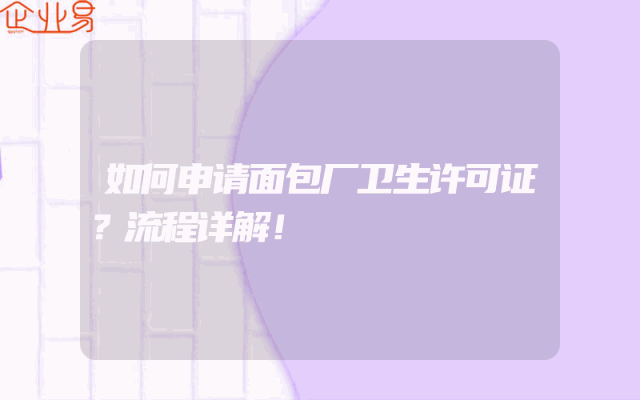 - 如何申请面包厂卫生许可证?流程详解!一、了解相关政策和要求首先,面包厂卫生许可证的申请需要符合国家和地方相关食品安全卫生法律法规的要求。申请人需要对面包生产行业的卫生标准、操作流程以及管理规范有充分的了解。这包括但不限于食品安全法、食品卫生