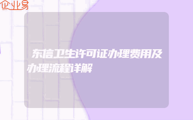 - 东信卫生许可证办理费用及办理流程详解一、前言随着经济的发展和社会的进步,卫生许可证已成为众多企业和个体工商户开展经营活动的必备证件。东信地区卫生许可证的办理流程及费用,对于想要在此地经营的企业和个体工商户来说,是必须了解的重要内容。本文将详