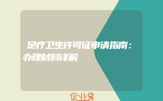 - 足疗卫生许可证申请指南:办理材料详解一、了解足疗卫生许可证的重要性在当今服务行业蓬勃发展的时代背景下,足疗场所的经营日益受到关注。为了保障消费者的健康权益,足疗场所必须取得卫生许可证方可营业。卫生许可证不仅是对足疗场所卫生条件的认可,更是对