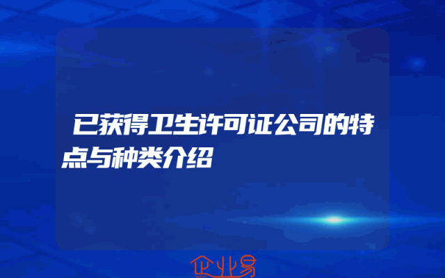 - 已获得卫生许可证公司的特点与种类介绍一、卫生许可证的重要性在现代社会,企业的合法性与其所提供的服务和产品一样重要。对于涉及卫生安全的企业来说,获得卫生许可证是确保企业合法运营、保障公众健康的关键。卫生许可证不仅证明了企业符合国家和地方的卫生