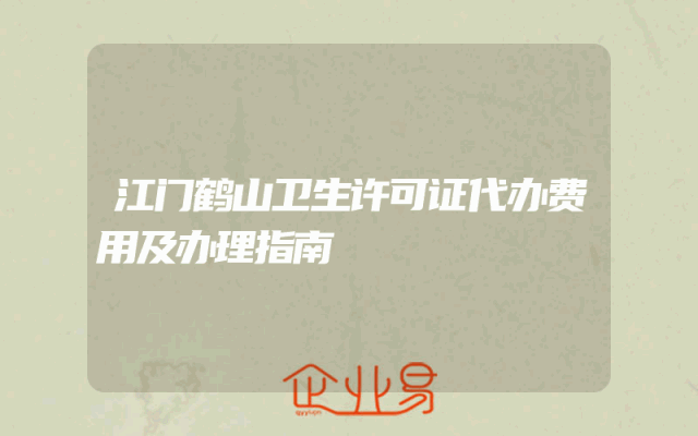 - 江门鹤山卫生许可证代办费用及办理指南