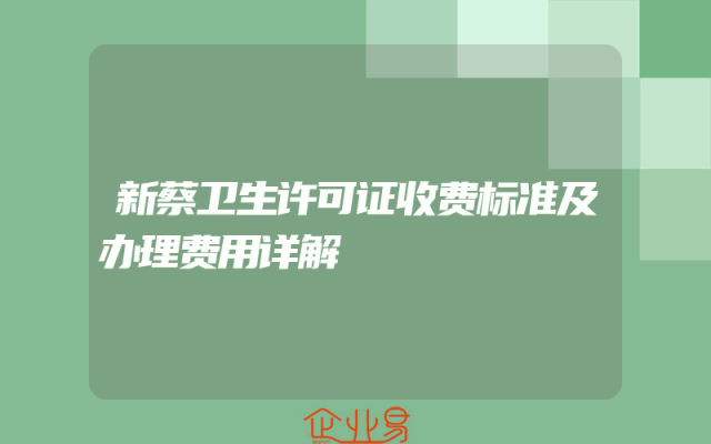 - 新蔡卫生许可证收费标准及办理费用详解