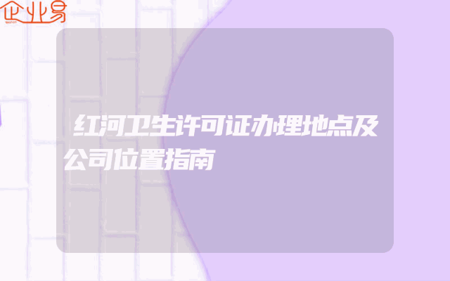 - 红河卫生许可证办理地点及公司位置指南一、红河卫生许可证的重要性在红河地区,无论是新成立的公司还是已经运营多年的企业,若涉及到食品生产、餐饮、医疗等行业,卫生许可证都是不可或缺的资质。该证书不仅是对企业卫