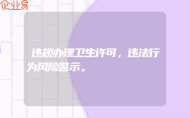 - 违规办理卫生许可,违法行为风险警示一、违规办理卫生许可的危害性卫生许可作为企业从事食品、卫生等相关行业的必备资质,其重要性不言而喻。然而,一些企业为追求快速盈利或其他不正当目的,采取违规手段办理卫生许可,这不仅严重破坏了市场秩序,更对公众健