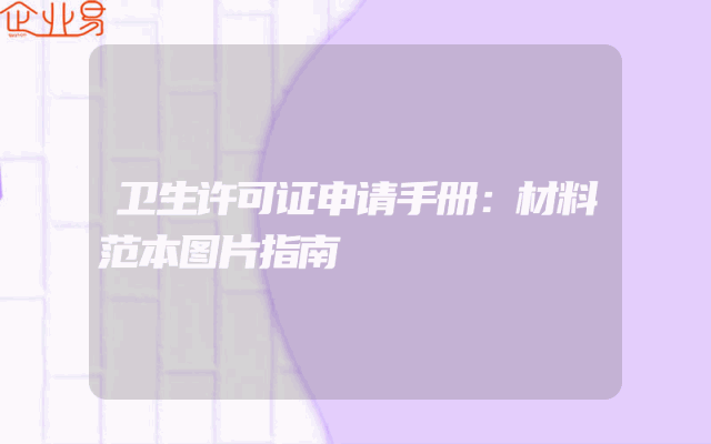 - 卫生许可证申请手册:材料范本图片指南一、引言卫生许可证是企业开展食品生产、餐饮服务等业务的重要资质之一。申请卫生许可证需要提供一系列材料,包括申请表、证明文件、材料范本等。为了帮助申请者更好地准备材料,本手册结合图片指南,详细阐述了卫生许可