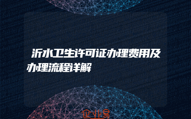 - 沂水卫生许可证办理费用及办理流程详解一、前言本文将详细介绍沂水地区卫生许可证的办理流程及费用,帮助申请者更好地了解相关政策和要求,以便顺利完成申请手续。二、办理费用概述沂水卫生许可证的办