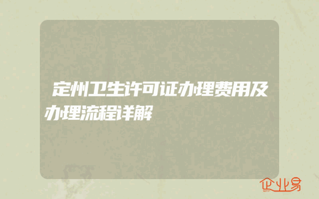 - 定州卫生许可证办理费用及办理流程详解一、引言在定州开展商业活动,卫生许可证是必不可少的一项资质。该许可证的办理涉及一系列流程和政策,对于企业和个人来说都是重要的知识点。本文将详细解析定州卫生许可证的办理费用及流程,帮助申请者更好地了解和准备