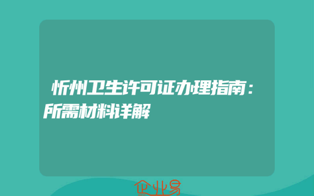 - 忻州卫生许可证办理指南:所需材料详解一、前言卫生许可证是企业或机构从事食品、卫生相关行业的必备证照。在忻州,想要顺利办理卫生许可证,了解所需材料是第一步。本文将详细解读忻州卫生许可证办理所需的各项材料,帮助您高效完成办理流程。二、主体所需材