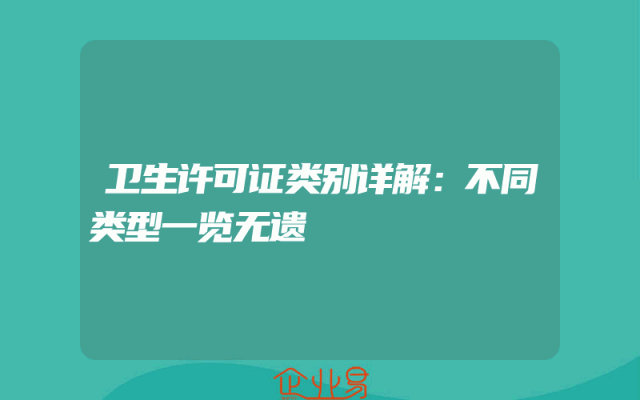 - 好的,下面是我为您撰写的文章:睢县卫生许可证号开头数字查询解析在当今社会,各类企业的兴起使得资质办理变得愈发重要。作为专业企业服务行业从业者,本文将聚焦睢县卫生许可证号开头数字查询的话题,从不同角度进行深入探讨。一、卫生许可证的重要性卫生许