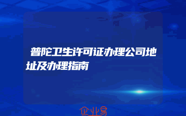 - 普陀卫生许可证办理公司地址及办理指南一、普陀卫生许可证办理公司介绍普陀卫生许可证是从事医疗卫生行业的单位必备资质,关乎企业和个人的合法权益。为满足广大企业和个人的需求,专门的卫生许可证办理公司应运而生。这些公司具备丰富的经验和专业的