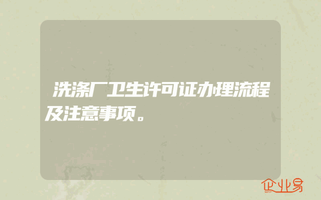 - 洗涤厂卫生许可证办理流程及注意事项。