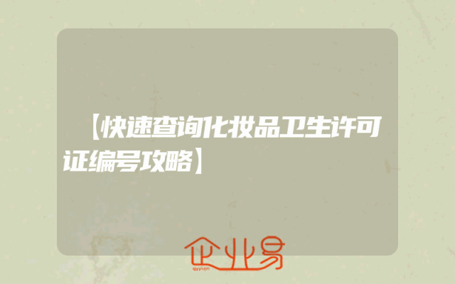 - 快速查询化妆品卫生许可证编号攻略一、了解化妆品卫生许可证的重要性化妆品卫生许可证是国家对化妆品生产企业进行监管的重要证明,它确保了化妆品生产企业的产品质量和卫生安全。对于消费者而言,购买化妆品时查看其卫生许可证编号,是确保所购产品安全可靠的
