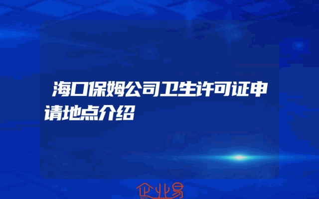 - 海口保姆公司卫生许可证申请地点介绍一、引言随着家庭服务行业的快速发展,海口市的保姆公司日益增多,为市民提供了大量的家政服务。为了确保服务质量与公共卫生安全,开设保姆公司必须申请卫生许可证。本文将详细介绍海口保姆公司卫生许可证的申请地点及相关