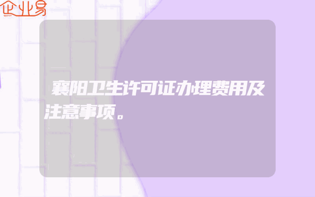 - 襄阳卫生许可证办理费用及注意事项一、襄阳卫生许可证办理费用在襄阳,卫生许可证的办理费用是根据不同的行业和场所而有所差异。一般来说,餐饮、食品生产、公共场所等涉及民众健康安全的行业,其卫生许可证的办理费用相对较高。具体的费用包括申请费、审查费