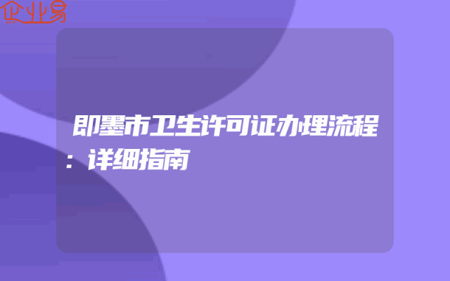 - 即墨市卫生许可证办理流程:详细指南一、了解卫生许可证的重要性和办理必要性卫生许可证是开展食品、公共场所等经营活动的必备证件,也是保障公众健康的重要措施。在即墨市,无论是新开办的企业还是已经运营的企业,都需要按照规定办理卫生许可证。对于企业和