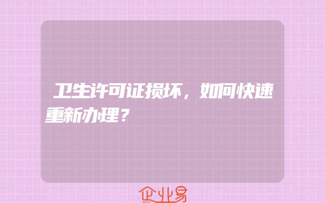 - 卫生许可证损坏:如何快速重新办理一、了解许可证损坏情况及法规要求当卫生许可证发生损坏时,首先需要了解许可证损坏的具体情况以及所在地的相关法规要求。是否是由于意外导致的损坏,还是由于其他原因造成的。不同地区的卫生行政部门对于许可证的补办流程和