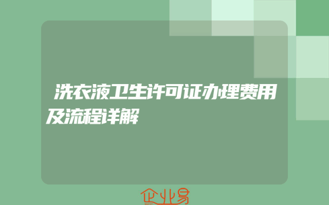 - 洗衣液卫生许可证办理费用及流程详解