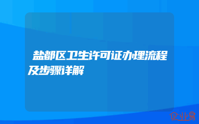 - 盐都区卫生许可证办理流程及步骤详解