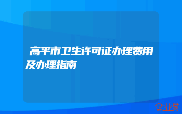 - 高平市卫生许可证办理费用及办理指南