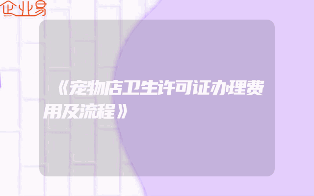 - 《宠物店卫生许可证办理费用及流程》