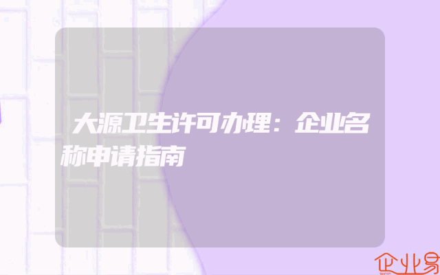 - 大源卫生许可办理:企业名称申请指南