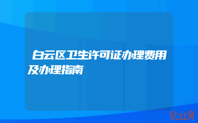 - 白云区卫生许可证办理费用及办理指南