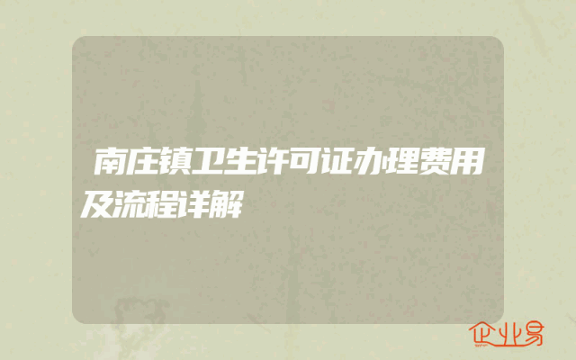- 南庄镇卫生许可证办理费用及流程详解