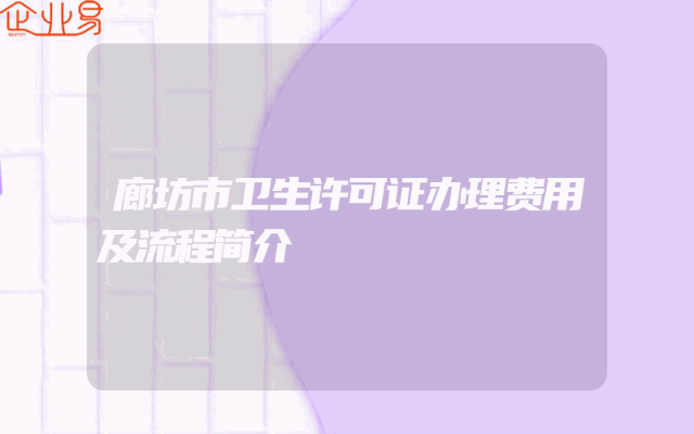 - 廊坊市卫生许可证办理费用及流程简介