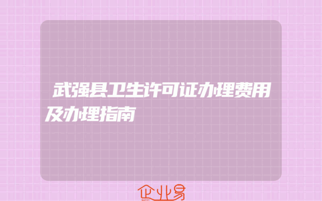 - 武强县卫生许可证办理费用及办理指南