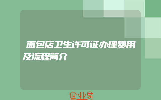 - 面包店卫生许可证办理费用及流程简介