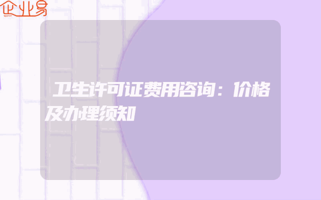 - 卫生许可证费用咨询:价格及办理须知