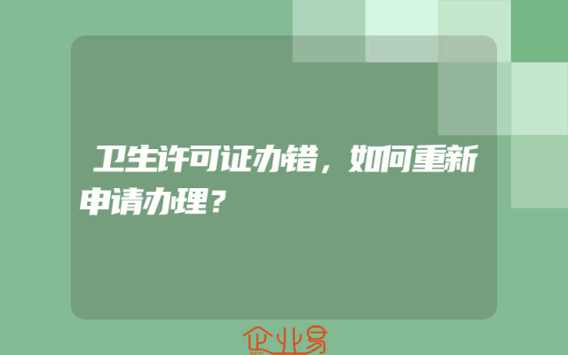 - 卫生许可证办错,如何重新申请办理?一、发现卫生许可证办错在经营过程中,如果发现卫生许可证存在错误,如信息填写不准确、资质不符等问题,需及时采取措施。首先,应仔细核对已提交的申请材料和审批结果,确认许可证的确存在错误。二、准备重新申请的材料确