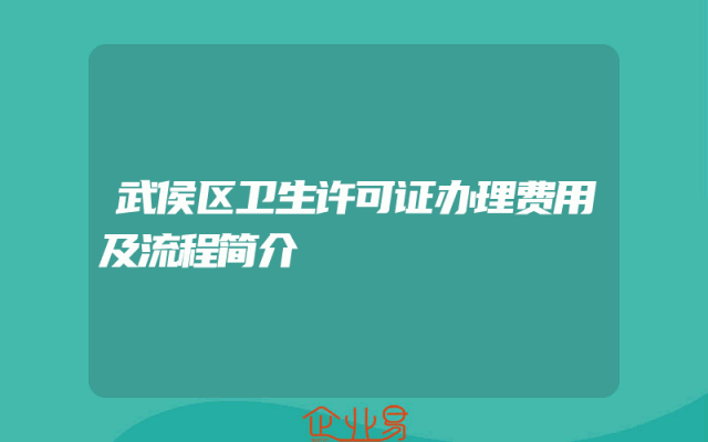 - 武侯区卫生许可证办理费用及流程简介一、武侯区卫生许可证办理费用在武侯区办理卫生许可证,企业需要支付一定的费用。这些费用主要用于支持政府部门的审核和监管工作,确保企业符合卫生标准。具体的费用包括申请费、审核费、证件打印费及其他相关费用。值得注