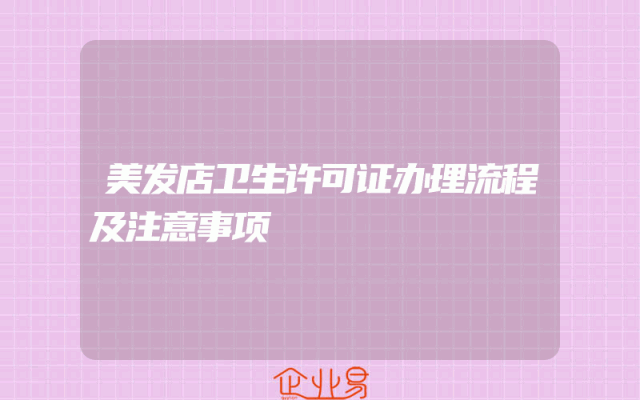 - 美发店卫生许可证办理流程及注意事项一、了解卫生许可证的重要性对于美发店来说,卫生许可证是合法经营的必备证件。它不仅是对店铺卫生条件达标的一种证明,也是保障顾客健康的重要凭证。因此,每个美发店都需重视卫生许可证的办理。二、美发店卫生许可证办理