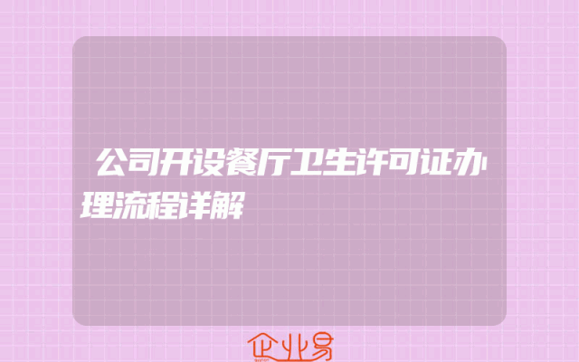 - 公司开设餐厅卫生许可证办理流程详解一、了解卫生许可证的重要性及办理前提对于任何一家开设餐厅的企业来说,卫生许可证都是必不可少的资质。它不仅是对餐厅卫生条件达标的一种认证,更是保障顾客饮食安全的重要凭证。在申请卫生许可证之前,餐厅需确保硬件设