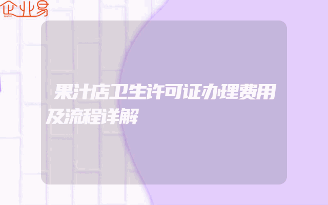- 果汁店卫生许可证办理费用及流程详解一、前言随着饮品市场的蓬勃发展,果汁店日益成为消费者喜爱的场所。为了确保食品安全与卫生,开设果汁店需要办理卫生许可证。本文将详细解析果汁店卫生许可证的办理费用及流程,帮助创业者顺利走上经营之路。二、