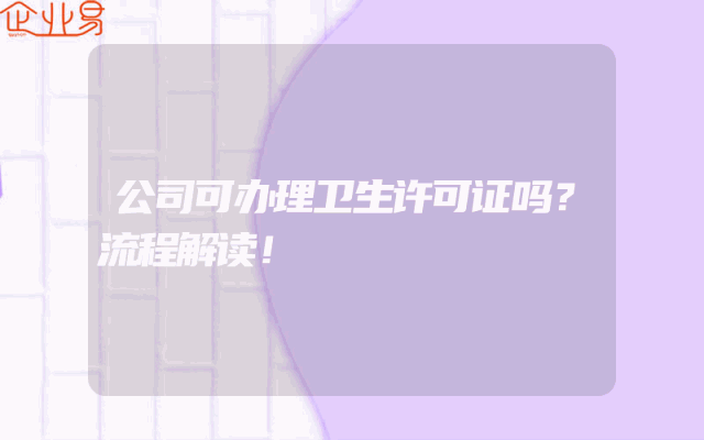 - 公司可办理卫生许可证吗?流程解读!