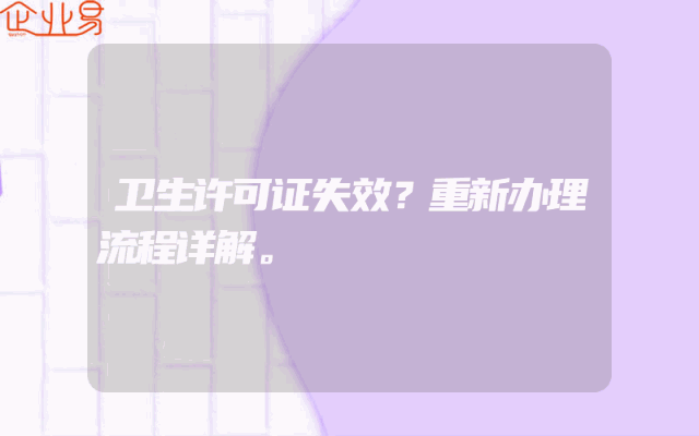 - 卫生许可证失效?重新办理流程详解。