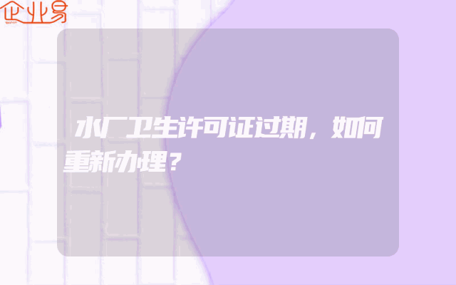 - 水厂卫生许可证过期,如何重新办理?